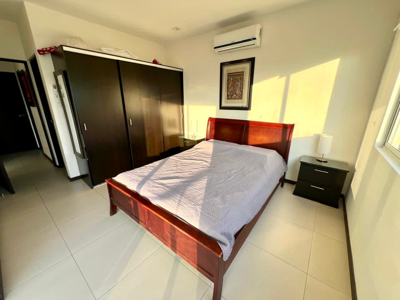 – La habitación máster con cama king igual ofrece una bella vista al mar y atardecer con salida a la terraza. Además dispone de un televisor, un amplio closet, aire acondicionado y su propio baño con ducha.